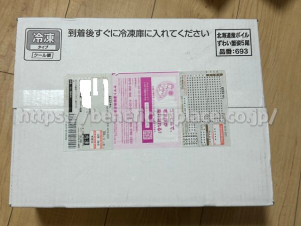 冷凍便で到着し、外箱に大きな凹みなどはなく、保冷状態も良好でした。