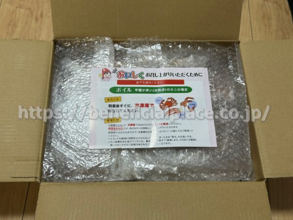 箱の中には、ずわい姿がぎっしり5杯と、簡単な解凍・食べ方ガイドが入っていました。