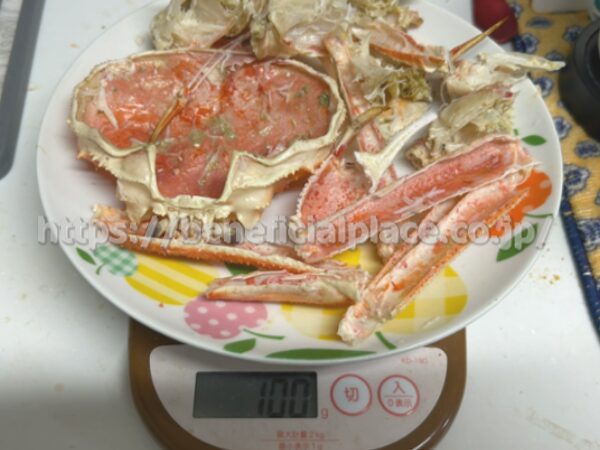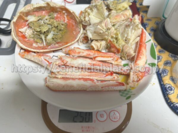 食べた後の殻を測ってみると100gでしたので、食べられる部分は150gだったことになります。